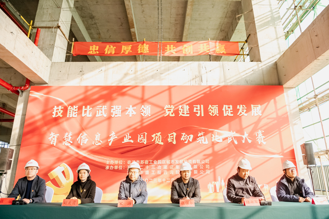 12月6日下午,園區(qū)智慧信息產(chǎn)業(yè)園開展“技能比武強本領 黨建引領促發(fā)展”主題的砌筑比武活動,園區(qū)機關及直屬單位黨委副書記、管委會辦公室副主任宋海、園區(qū)國資國企黨委副書記、財政局副局長張保桐、園區(qū)規(guī)劃建設局副局長劉美霞、園區(qū)建設工程質(zhì)量安全監(jiān)督站副站長方東、城發(fā)公司管理層及全體黨員、智慧信息產(chǎn)業(yè)園項目參建團隊參加本次活動,六組參賽隊伍分工明確,人員緊密配合,經(jīng)過激烈角逐,又快又好完成樣式圖案砌筑,決勝出綜合排名前三的隊伍,并為獲獎隊伍頒發(fā)獎品。