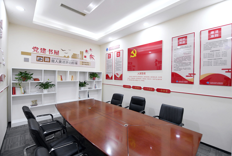 城發(fā)公司黨支部以“規(guī)范、節(jié)儉、實用”為目標(biāo),對原會議室進(jìn)行了科學(xué)設(shè)計和規(guī)劃,滿足公司黨員職工學(xué)習(xí)、會議需要,并配置書架存放多種類黨建書籍、管理書籍以及日常學(xué)習(xí)活動資料,全方位為黨建工作開展活動創(chuàng)造條件和溫馨的環(huán)境,實現(xiàn)了“一室多用”的效果。