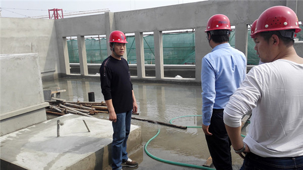 在檢查過程中,根據開發(fā)公司安全檢查的相關要求,劉建華指出夢家園先期要進行屋面蓄水工作,其中防水卷材存在使用壽命問題和屋面混凝土自防水的可靠性至關重要。針對屋面蓄水會暴露屋面防水薄弱點,后期進一步加強防水施工過程中的關鍵環(huán)節(jié),確保屋面不滲漏。