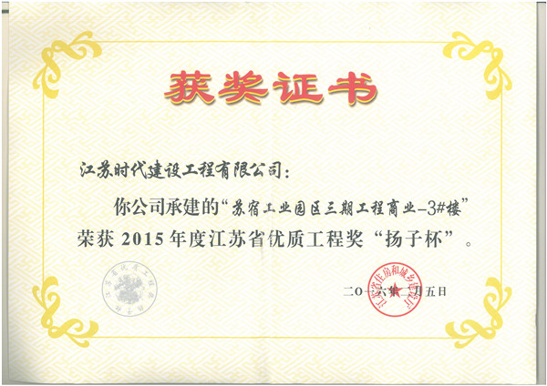 江蘇省“揚(yáng)子杯”優(yōu)質(zhì)工程獎(jiǎng)是我省建設(shè)工程質(zhì)量最高榮譽(yù)獎(jiǎng),為省人民政府確定的行政獎(jiǎng)勵(lì), 代表了我省當(dāng)前工程建設(shè)質(zhì)量的最高水平。揚(yáng)子杯每年評審一次,評選對象為我省境內(nèi)、已經(jīng)建成并投入使用的各類建設(shè)工程。該獎(jiǎng)的設(shè)立旨在促進(jìn)建設(shè)和施工單位提高工程質(zhì)量水平、增強(qiáng)建筑精品意識。