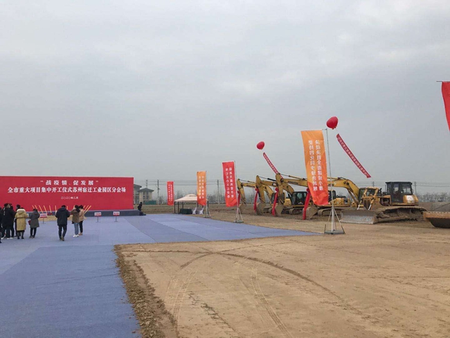 根據(jù)報道,本次宿遷市“戰(zhàn)疫情、促發(fā)展”集中開工項目共計44個,計劃總投資329.9億元,年度計劃完成投資205.6億元,其中蘇宿工業(yè)園區(qū)開工項目6個,總投資24.6億元,年度計劃投資6.2億元。