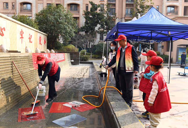 活動現(xiàn)場,黨員志愿者們身著志愿服,在社區(qū)工作人員的配合下,以“便民、利民、為民”為出發(fā)點,為小區(qū)居民免費提供理發(fā)、沖洗地墊、清理垃圾等便民服務,用實際行動弘揚“雷鋒精神”。