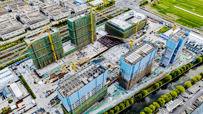 2023年4月13日,蘇宿工業(yè)園區(qū)民生工程青年公寓施工現(xiàn)場(chǎng),工人正在加緊施工。