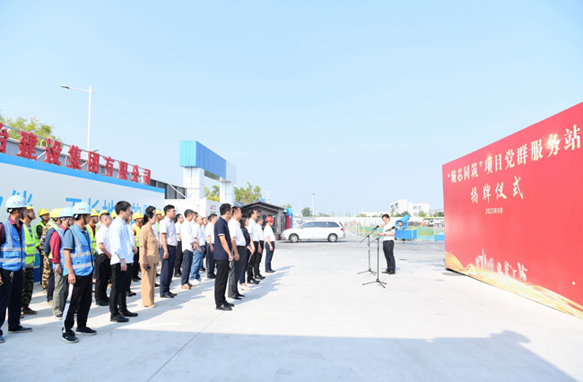 9月1日上午,城發(fā)公司“城芯同筑”項(xiàng)目黨群服務(wù)站揭牌儀式在園區(qū)智慧信息產(chǎn)業(yè)園項(xiàng)目部現(xiàn)場(chǎng)舉行,園區(qū)黨工委委員、管委會(huì)副主任、園區(qū)機(jī)關(guān)及直屬單位黨委書記崔廣全,園區(qū)黨工委委員、管委會(huì)副主任、園區(qū)國(guó)資國(guó)企黨委書記張漢華,城發(fā)公司管理層及全體黨員,五礦二十三冶華東分公司和江蘇華盛監(jiān)理公司黨員代表參加活動(dòng)。