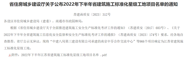 近期,省建設(shè)廳下發(fā) 《 關(guān)于公布2022年下半年江蘇省建筑施工標(biāo)準(zhǔn)化星級工地公示名單 》的通知,城發(fā)公司投資建設(shè)的青年公寓一期土建及安裝工程喜獲“江蘇省建筑施工標(biāo)準(zhǔn)化星級工地”(二星)稱號。該榮譽的獲得是公司扎實推進(jìn)省安全生產(chǎn)標(biāo)準(zhǔn)化建設(shè),落實上級關(guān)于推進(jìn)安全生產(chǎn)標(biāo)準(zhǔn)化建設(shè)工作部署的要求,建立健全管理機制,積極開展安全文明標(biāo)準(zhǔn)化工地創(chuàng)建所取得的成果,為全省樣板化示范,有效提升建筑施工水平,安全生產(chǎn)發(fā)揮了引領(lǐng)作用。