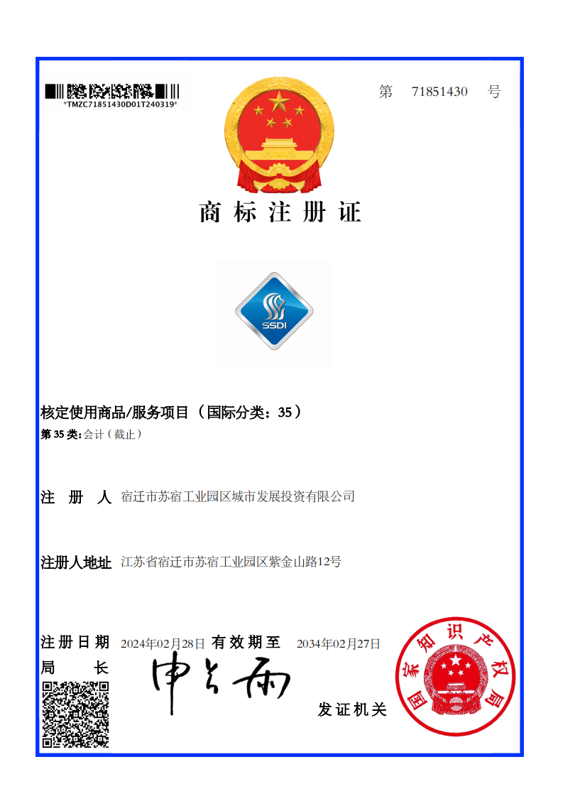 近日,城發(fā)公司成功獲得了國家知識產(chǎn)權(quán)局的批準的商標注冊證。這標志著公司在知識產(chǎn)權(quán)保護和市場競爭力提升方面邁出了堅實的一步,為公司的品牌之路再添新里程碑。