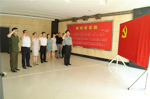 在黃花塘新四軍紀(jì)念館,全體黨員干部觀看了實(shí)物展覽和文字圖片介紹,直觀地感受和體會(huì)了新四軍革命先烈在硝煙彌漫的年代,用鮮血和生命爭取人民解放的偉大奉獻(xiàn)精神,學(xué)習(xí)了陳毅、粟裕等老一輩無產(chǎn)階級革命家敢為人先、顧全大局、不畏犧牲、艱苦奮斗的優(yōu)良傳統(tǒng)。在紀(jì)念館大廳,全體黨員面對鮮紅的黨旗,莊嚴(yán)地舉起右拳齊聲宣誓,重溫了入黨誓詞。