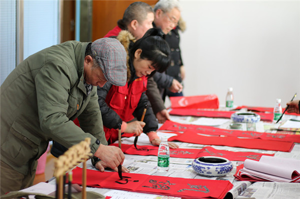 社區(qū)此次“迎新春送春聯(lián)”活動,受到了居民們的熱烈歡迎?!按髱煟埥o我寫副對聯(lián)吧!”不少居民在自己“心儀”已久的書法家身邊“討春聯(lián)”,“討祝?!??!袄蠋?,您寫得太好了!”活動中,居民們贊嘆不斷,兩百余副春聯(lián)幾分鐘內(nèi)“一掃而空”。