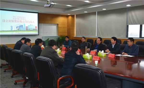 12月1日下午,園區(qū)管委會與宿遷市地稅局舉行設(shè)立社保費征收點簽約儀式。副市長、園區(qū)黨工委書記、管委會主任方文浜,市地稅局局長王月明,園區(qū)工委領(lǐng)導戈亮、高揚出席簽約儀式。